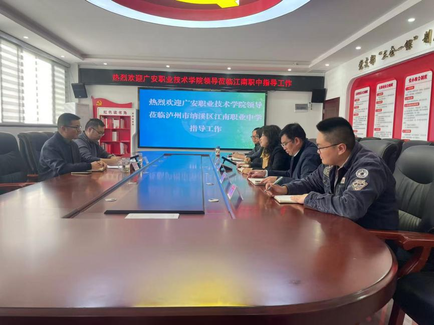 在泸州纳溪区江南中学校,考察组参观教学与实训场地,与校方座谈,明确课程衔接、学生管理衔接及定期沟通机制;在江安县职业技术学校,双方围绕实训合作、课程调整及“中职打基础、高职强技能”模式达成共识。