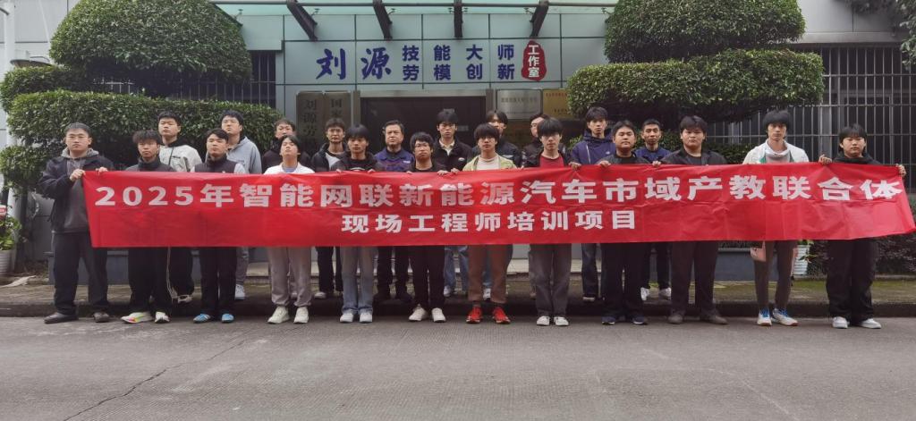 为响应智能网联新能源汽车产业人才需求,推进广职融圈,深化产教融合,近日,智能制造与汽车工程学院精心选拔4名优秀学生,和重庆工业职业技术大学等重庆高职院校学生一起赴长安刘源国家级技能大师工作室进行2025年市域产教联合体现场工程师培训项目。
