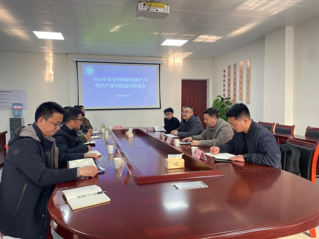 为扎实推进长安智能新能源汽车现代产业学院建设,深化产教融合、校企协同育人,1月13日下午,重庆长安安驿公司副总经理谢会斌一行莅临我校交流座谈,开展产业学院建设推进会。会议由学校党委委员、副校长袁驰主持,对外交流合作处负责人、智能学院党政班子及相关专业负责人参会。