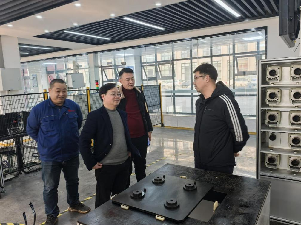 在林晓军书记、王国明院长等的陪同下,曹伟总经理一行参观了学院广安市装备制造中心,重点考察了双方共建的摩托车缸体智能化产线教学平台,并详细了解平台建设与运行情况。